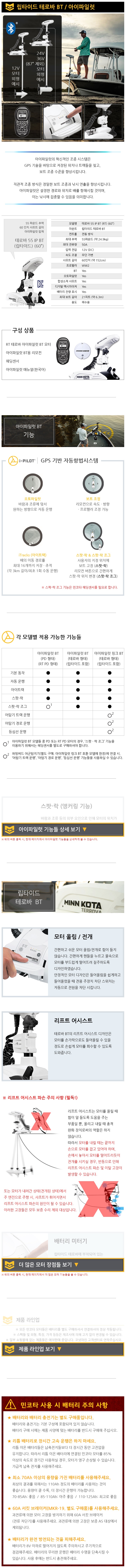 60인치/ RT 55 테로바 BT/ 아이파일럿/ 55파운드/ 60" 샤프트/ 무단가변/ 맥시마이저/ 12V/ 바다용