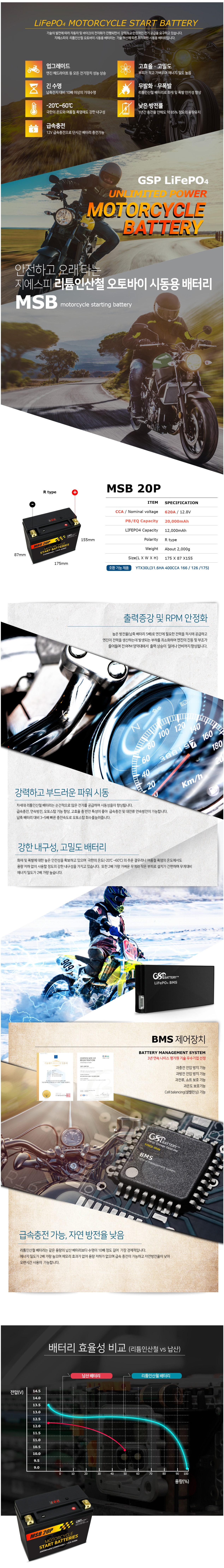 지에스피 리튬인산철 오토바이 ATV 시동배터리 GSP MSB 20P