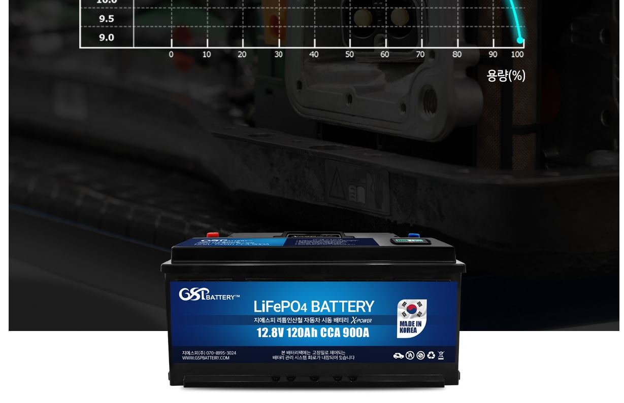 지에스피 스마트 하이브리드 올인원 X-POWER 리튬인산철 자동차 배터리 12V120Ah