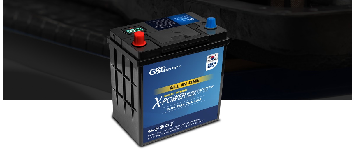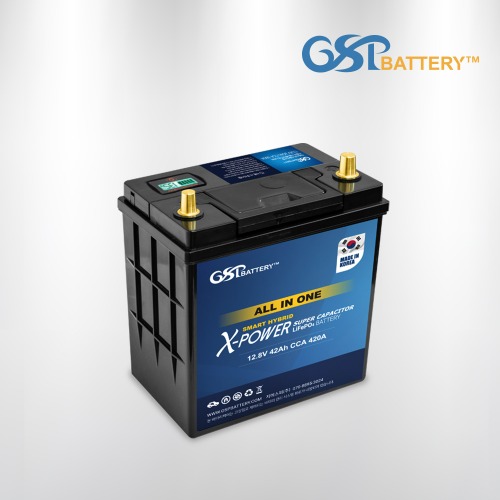 지에스피 스마트 하이브리드 올인원 X-POWER 리튬인산철 자동차 배터리 12V42Ah