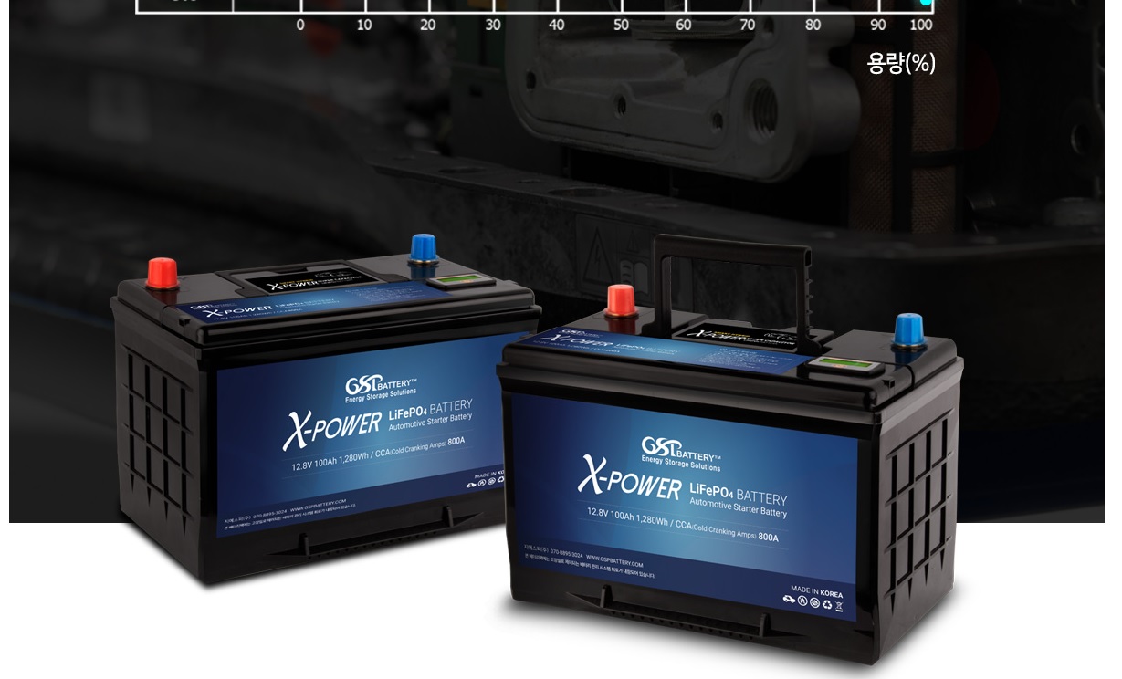 지에스피 스마트 하이브리드 올인원 X-POWER 리튬인산철 자동차 배터리 12V 100Ah