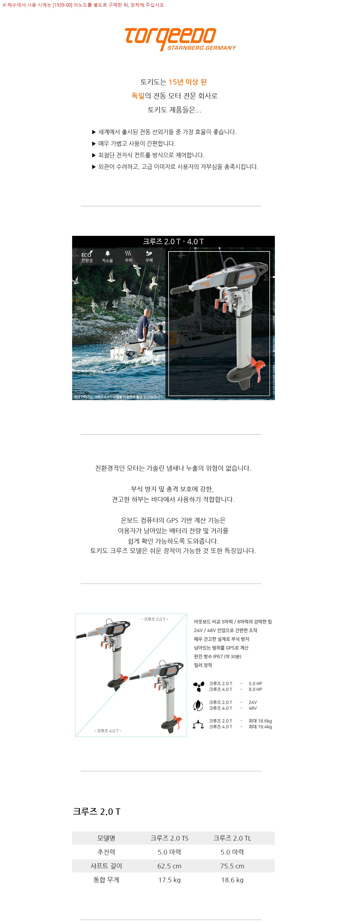 크루즈 5마력-틸러 / 24V 납축전지 사용/ 배터리 케이블 포함-전원차단 스위치 및 휴즈 내장/ 샤프트 길이 S