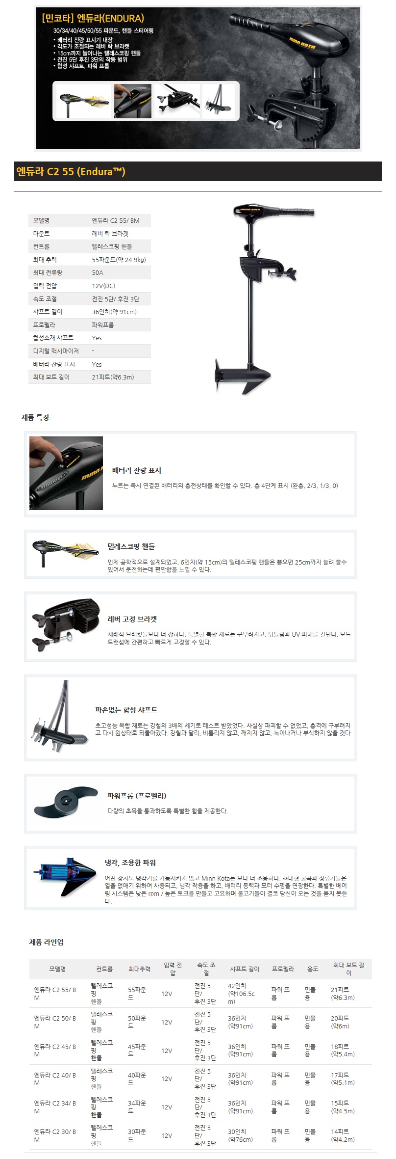 [엔듀라 C2 55/ BM] 배터리 잔량 표시, 55파운드, 36", 5/3 speed, 텔레스코핑 핸들, 12v