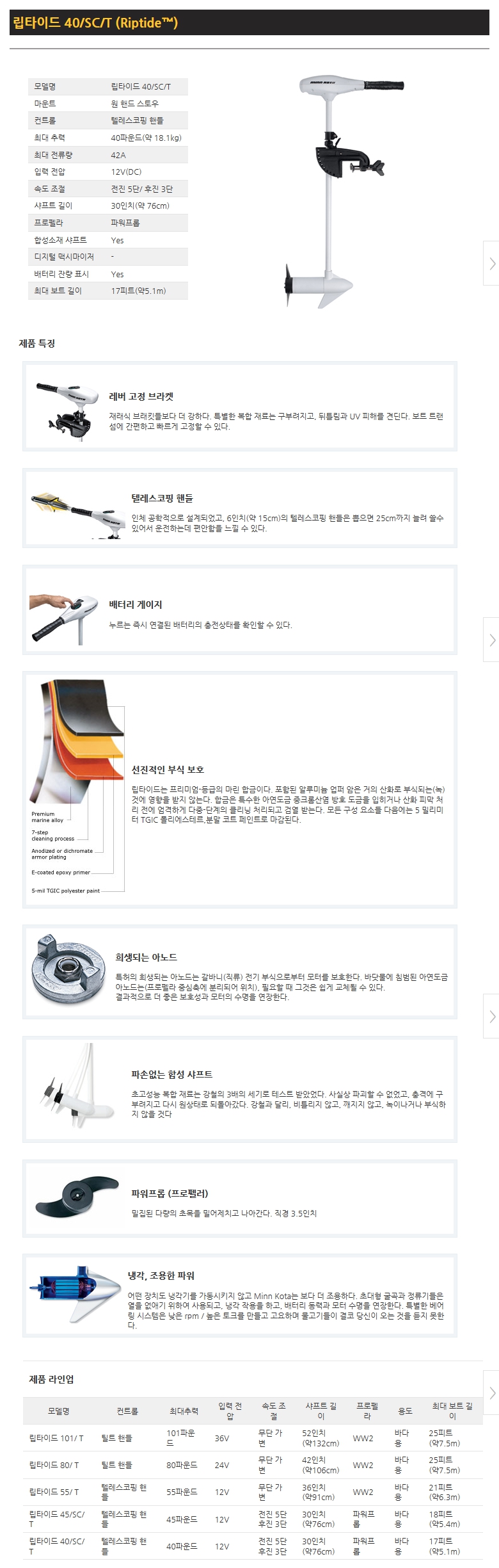 [립타이드 40/SC/T] 40파운드, 30", 5단 전진/후진 3단, 텔레스코핑 핸들, 바다(염수)용, 12v